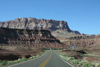 A couple of spectacular drives out of Utah (a state I was sad to leave): traveling south along Route 89 to Kaibab National Forest (yes, Arizona has pine trees and mountains) onto a road leading to the northern rim of the Grand Canyon, and moving through a desert on Route 89 that paralleled the Vermillion Cliffs. The latter almost rivaled the Scenic Byway from Bryce Canyon a couple of days earlier, and it was pretty amazing. In fact, on the ride back from the byway, I stopped at a filling station in a town called Tropic, and while paying for the gas, I remarked to a local resident about my excitement of traveling on Route 12 for the first time. To which he succinctly remarked, "To me, every time I travel on that road, it's always different."