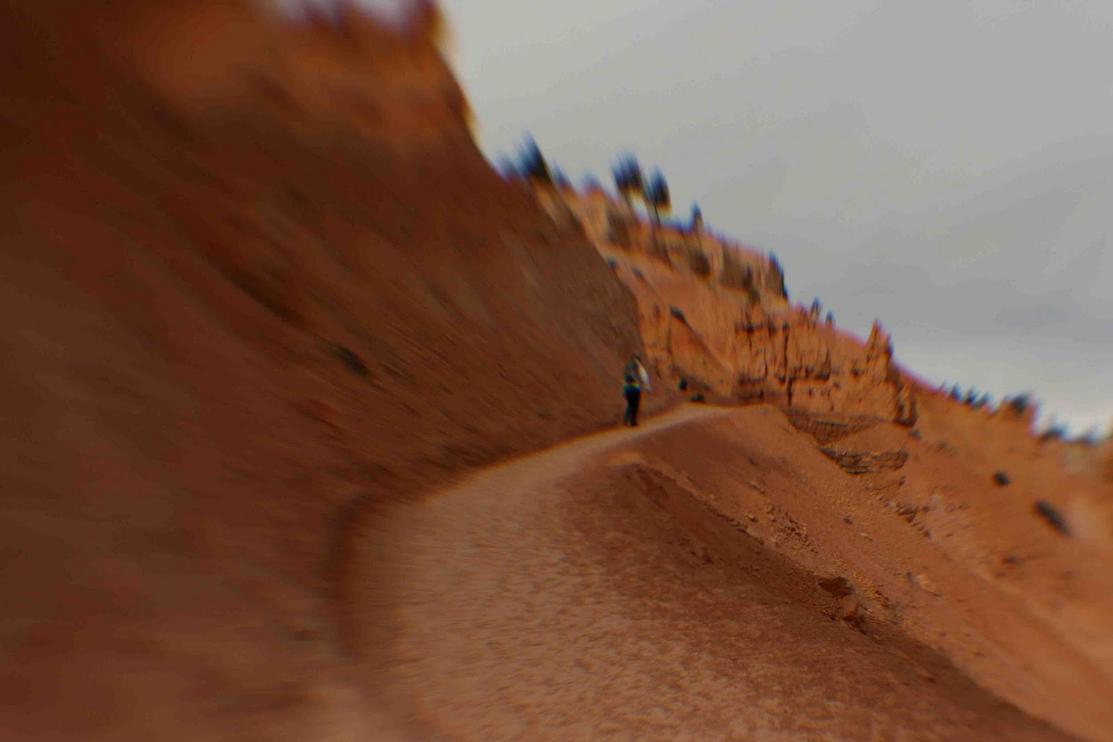 The cooler weather and clouds brought another dimension to viewing the spectacular sights of Bryce Canyon, and later on we would get a dose of snow in the afternoon. The trail leading up to Thor's Hammer was winding and while the view may be better from atop looking downward, the hike up was great.